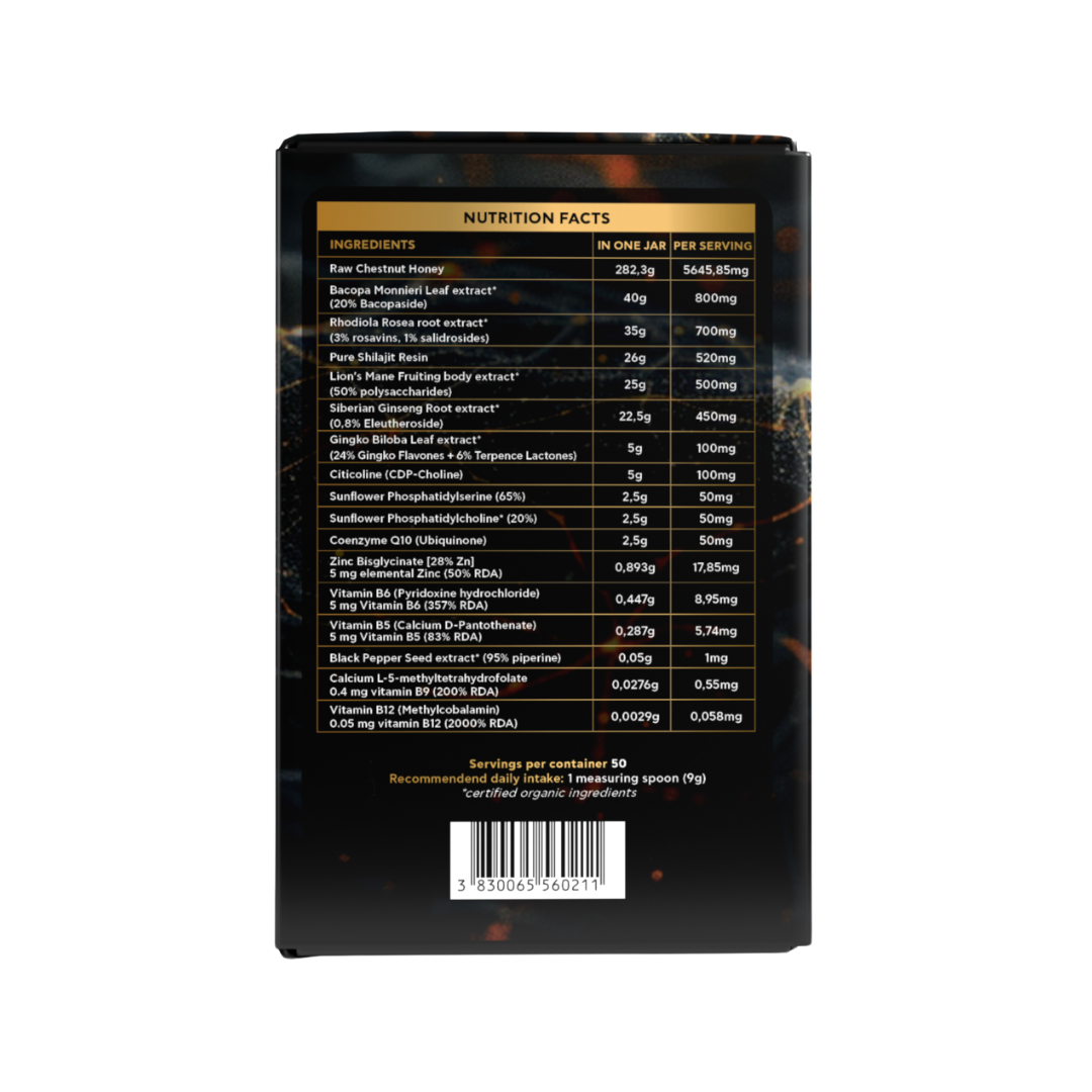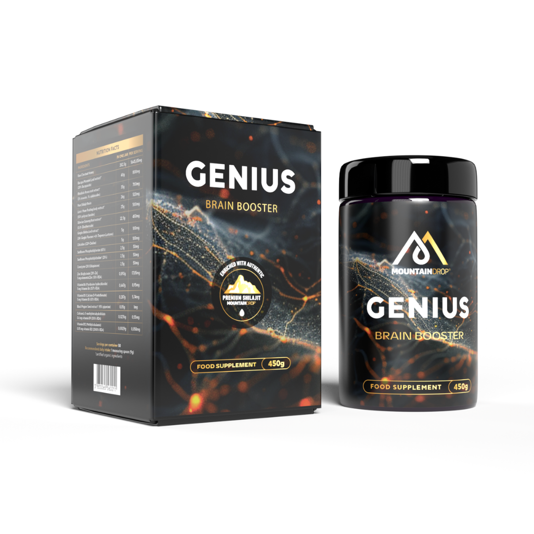 Experience a total cerebral uplift with Mountaindrop® Genius Brainbooster, an extraordinary powerblend made from 17 hiqh quality ingredients including our own premium Original shilajit. We have meticulously combined the optimal and most potent ingredients aim to support brain functions and deliver maximum mental energy and reduced fatigue. The bar has just been raised.