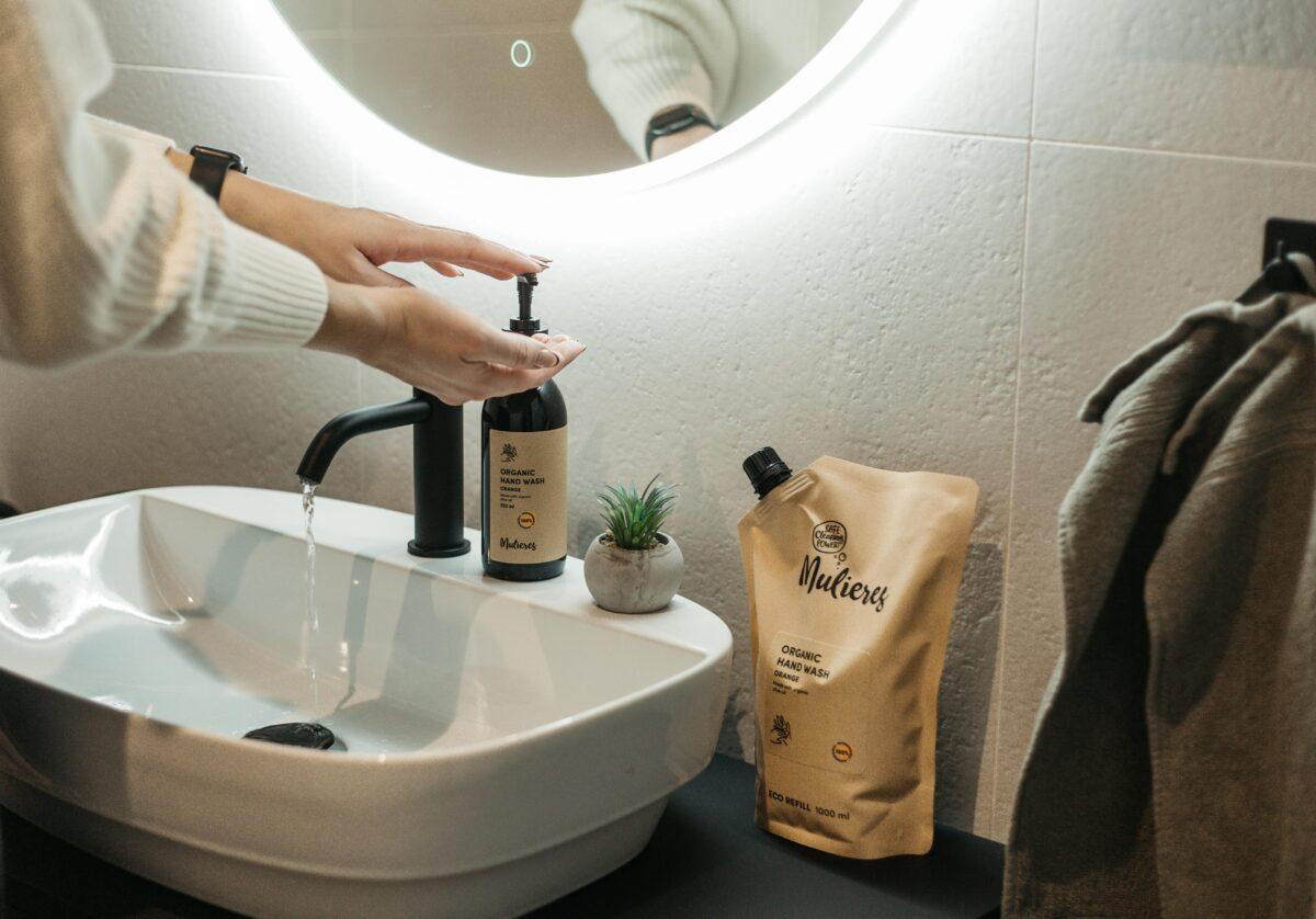 After washing your hands with Mulieres’s liquid soap, you could really forget yourself while caressing your skin. That is why we also recommend to pinch yourself gently after a hand wash if you happen to be in a hurry.
