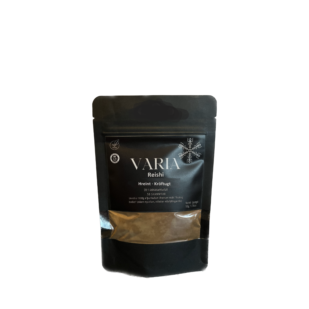 100% hreint Reishi extract duft unnið úr 1000g af þurrkuðum "fruting bodies" engin viðbótar- eða fyllingarefni.