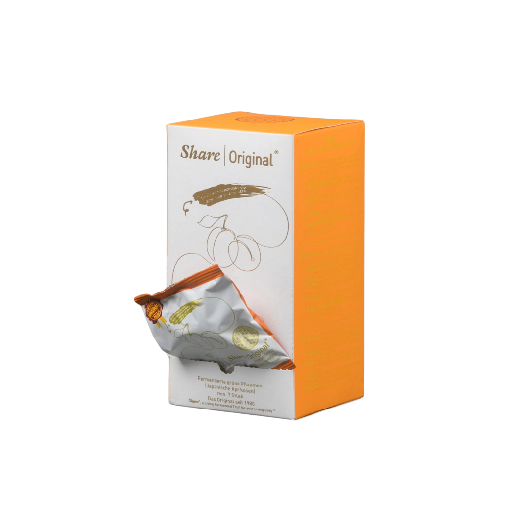 Share Orginal apríkósan kemur beint af trénu og er með kjarna í miðjum ávextinum sem ekki er mælt með að kyngja. Án viðbætts sykurs, Share Original inniheldur einungis náttúrulegan sykur úr ávextinum sjálfum.